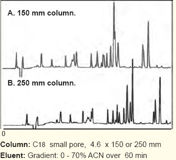 但是對(duì)于小分子多肽,往往長(zhǎng)柱比短柱的分離度大,這點(diǎn)類似化學(xué)小分子。