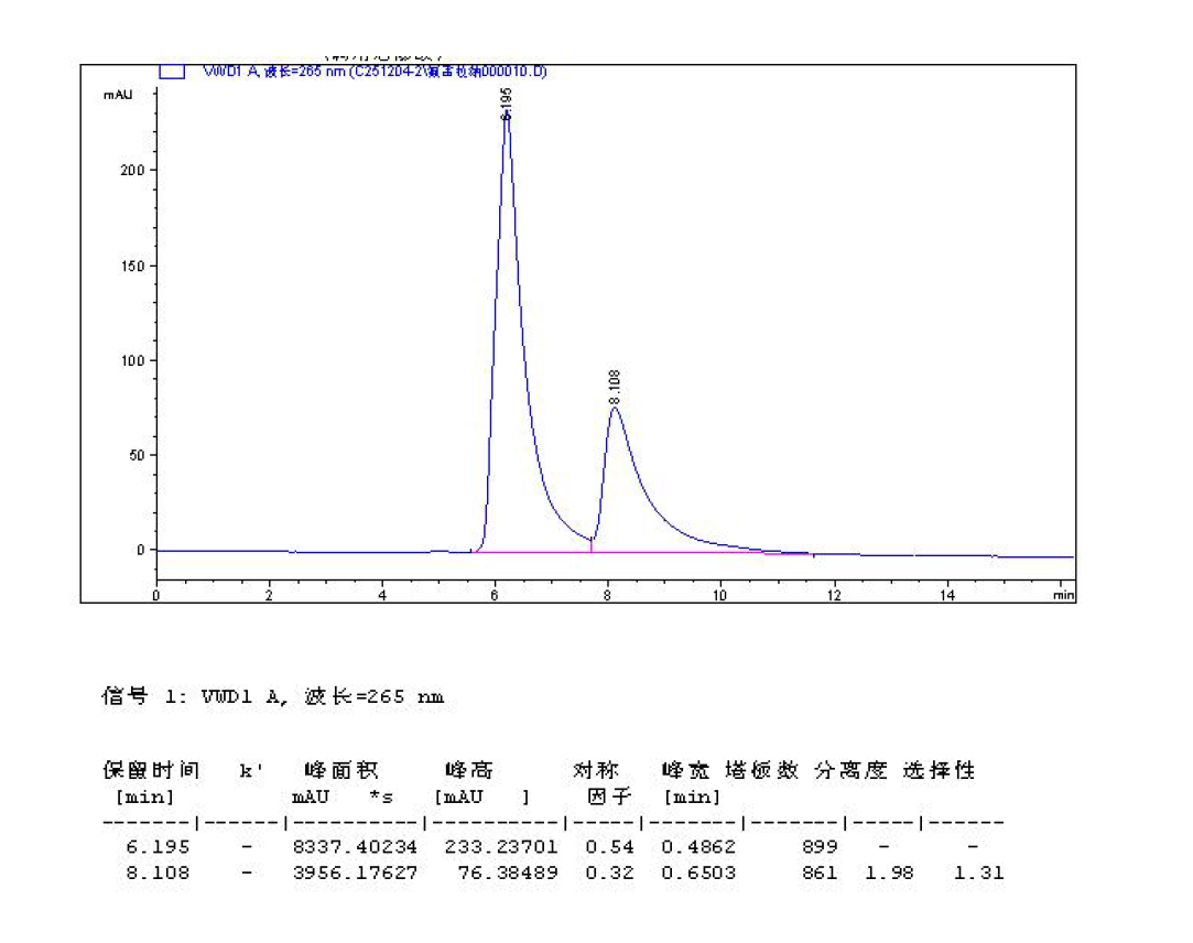 色譜柱:Chiral ND(2) 5μ 250*4.6mm( 貨號:FMG-AC5-A01-NFC) 流動(dòng)相及色譜條件:咨詢